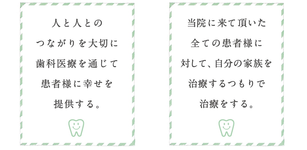 A. 「地域の皆さんに、岡野歯科医院に通ってよかったと思っていただけるよう、これからも初心を忘れずに頑張っていきます。」